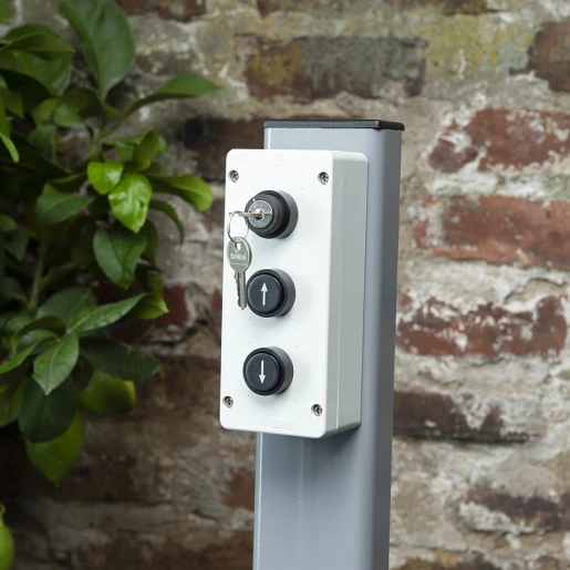 The all-weather outdoor lift is well protected against unauthorized use. It can be securely locked with a removable key.