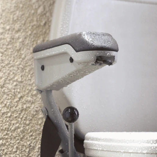 An outdoor seat lift works just as reliably as an indoor stair lift, but is also characterized by its robust and all-weather construction . The outdoor lift not only withstands moisture without any problems, but its surface material also defies extreme weather conditions such as cold and heat. The seat itself is also water-repellent and easy to clean if a little dirt does accumulate.